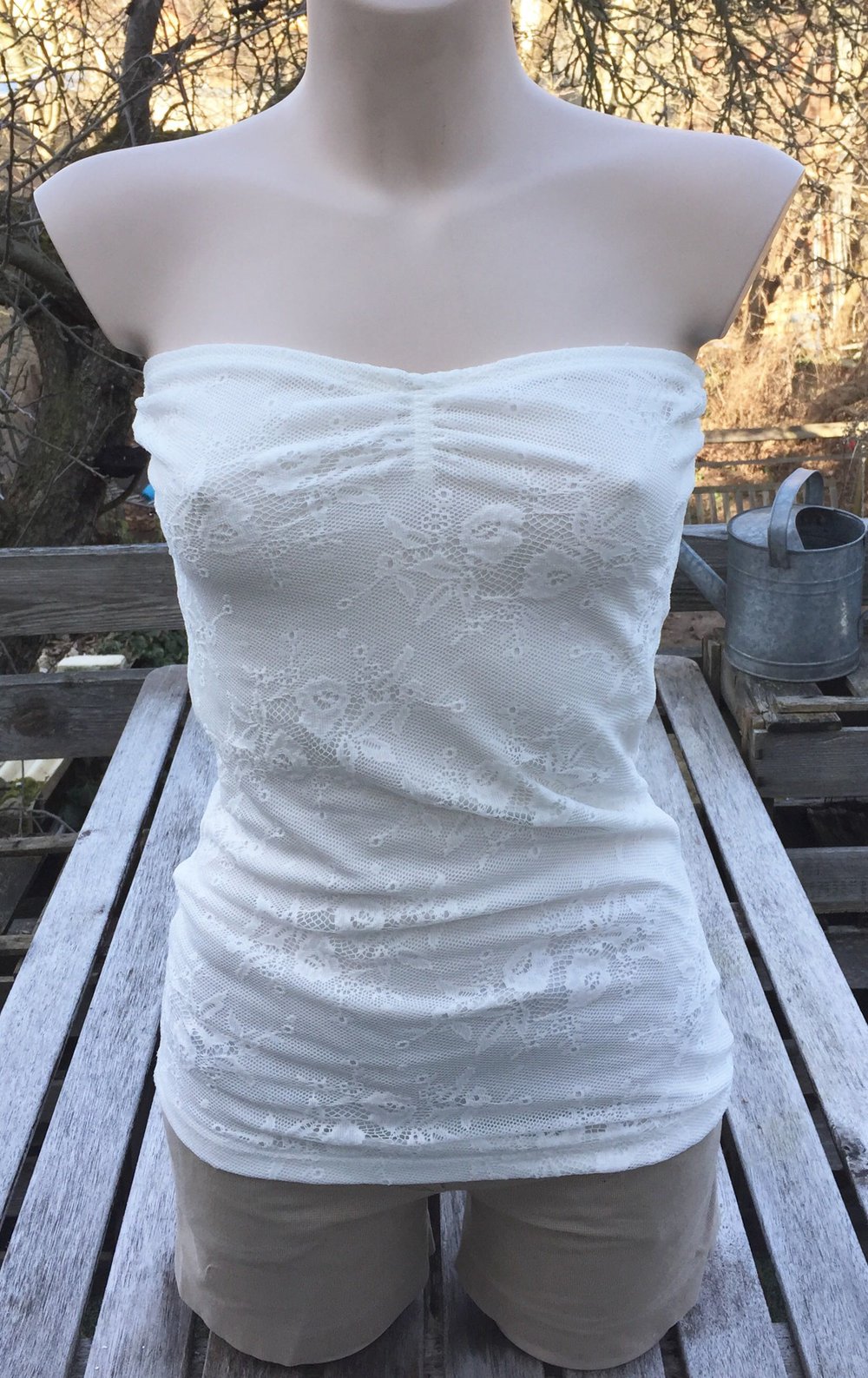 Cremeweißes, doppellagiges Tubetop aus Spitze von Sublevel in Größe S.