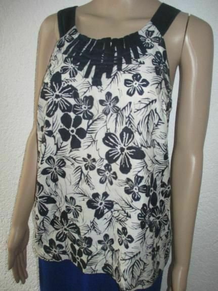 NEU mit ETIKETT * Ausgefallen * Hawai * Karibik * Blumen * Büten * Flower- Power * Baby Doll- Style * Träger- Top * Bluse "Calvin Klein" Gr. 36- 38/ S * marine- navy- dunkel- blau * weiß *