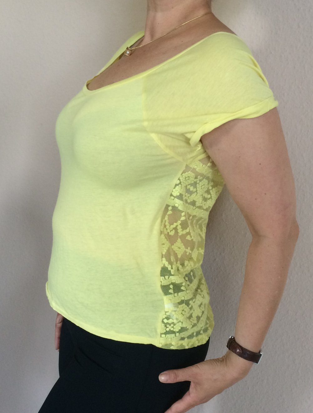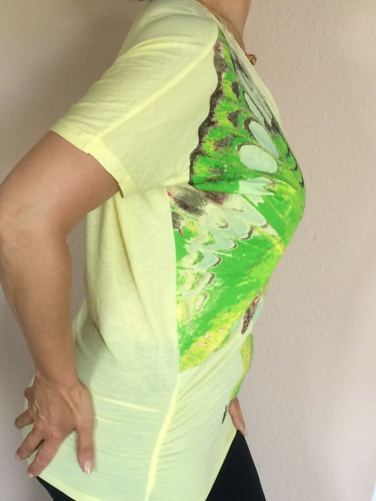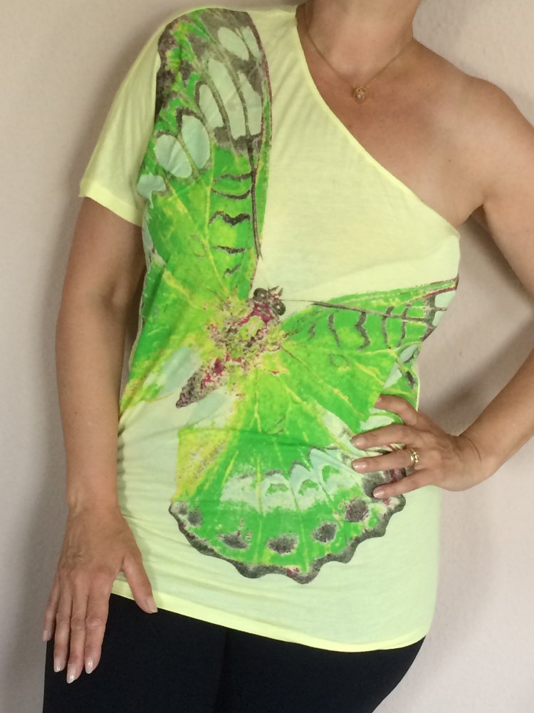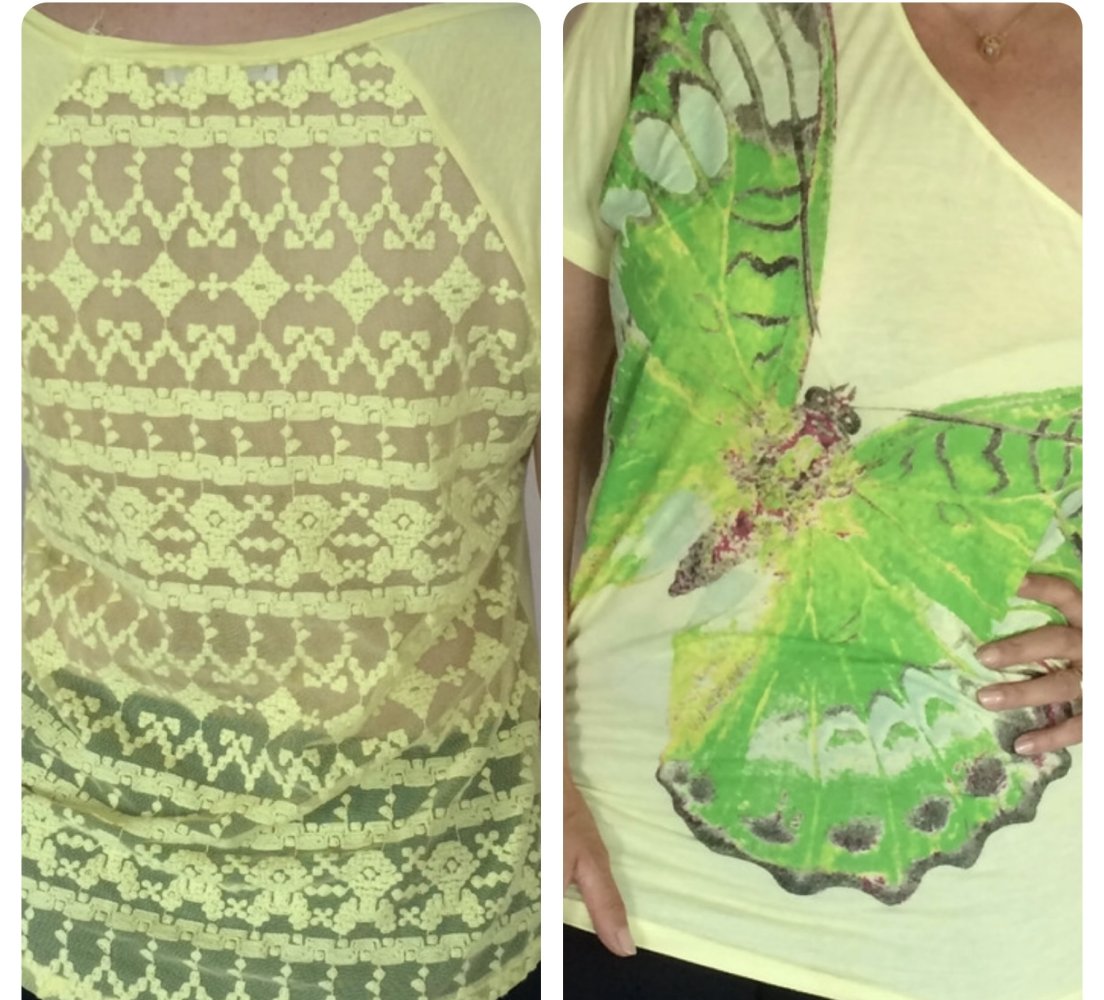 2 Sommer Tops Gr.M in pastell gelb von Zara + Amisu luftig leicht, das Zara Shirt hat einen See trough Rücken und das Amisu Shirt ist One Shoulder mit einem großen Schmetterling