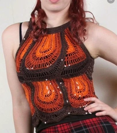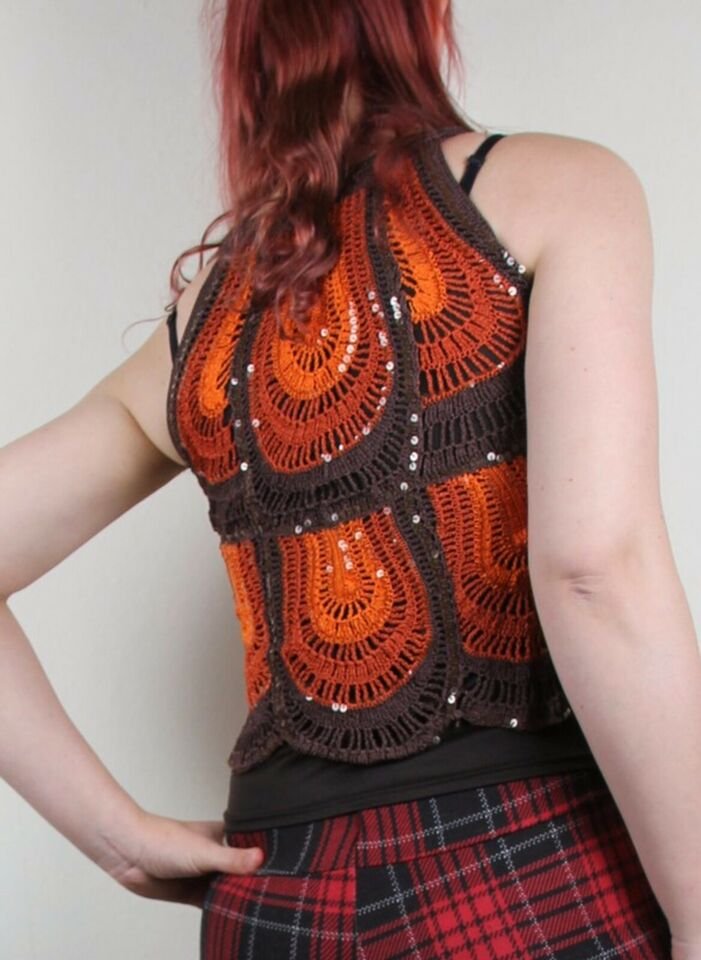 NEU * Ausgefallen * Boho * Hippie * Festival * Style * Glitzer Pailletten * Off Shoulder * Häckel * Top * T- Shirt "NICOWA" Gr. 34- 36/ XS- S * schokoladen- braun * orange *