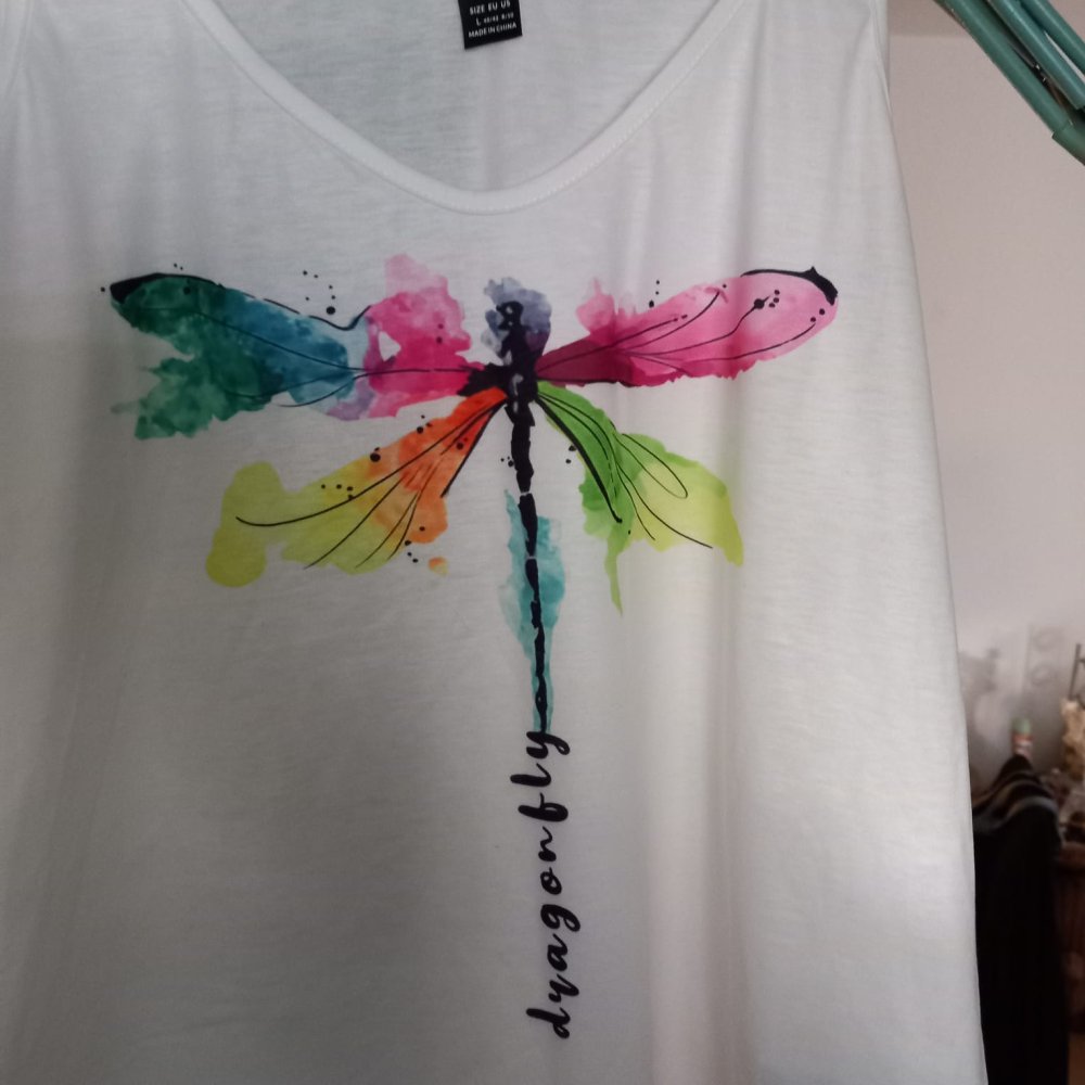 Biete dieses neuwertige Top. Der Libellen Druck ist nicht verwaschen. Hier noch einige Maßangaben: