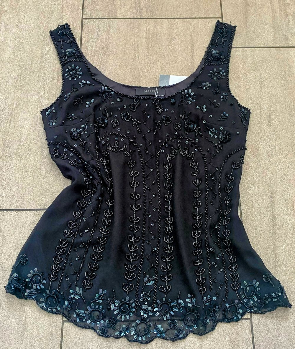 NEU Damen Shirt Sexy Abend Top aus Seide mit Glitzer Gr.S Schwarz Malvin