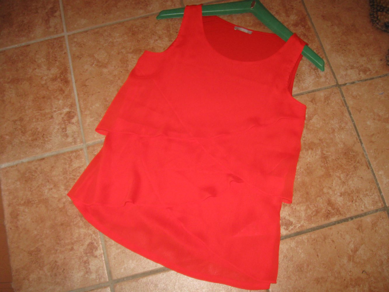 Biete dieses süße Top, das im Brustbereich 4 lagig asymmetrisch unterteilt ist. Der genaue Farbton ist ein kräftiges Orange. Es kam selten zum Einsatz und sieht auf gebräunter Haut einfach Hammer mäßig aus. Hier einige Maßangaben: