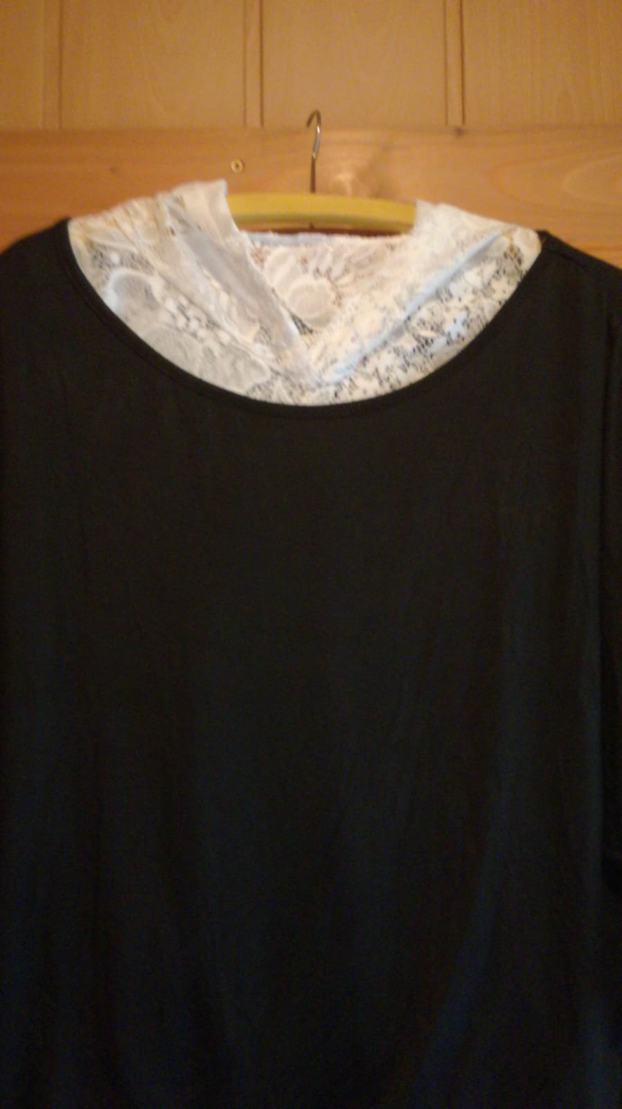 Biete dieses raffinierte Shirt mit Fledermaus Ärmeln, einer Kapuze die aus Spitze besteht, an der Schulter offen ist und einem Saum Abschluss, der ebenfalls aus der weichen Spitze besteht. Ein richtiges Traum Teilchen. Die Gesamtlänge beträgt ca. 68cm.