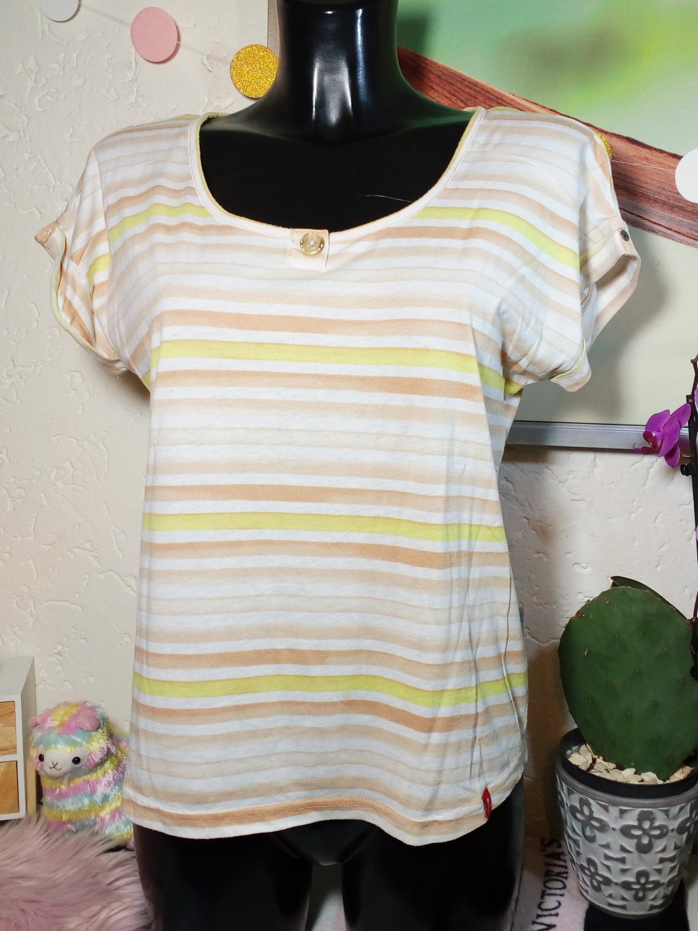 Lässiges edc by Esprit Streifen Shirt mit Deko Knopf Gr 38 M Medium gekrempelte Ärmel Hippie