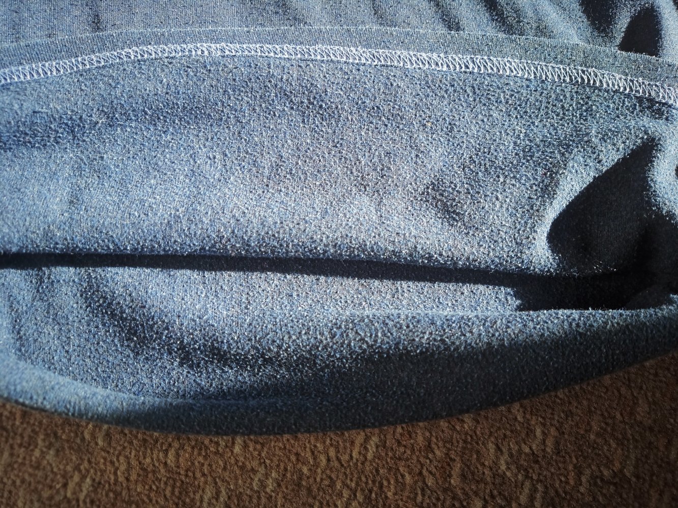 Material ist strechtig/dehnbar. Die Nähte sind weiss