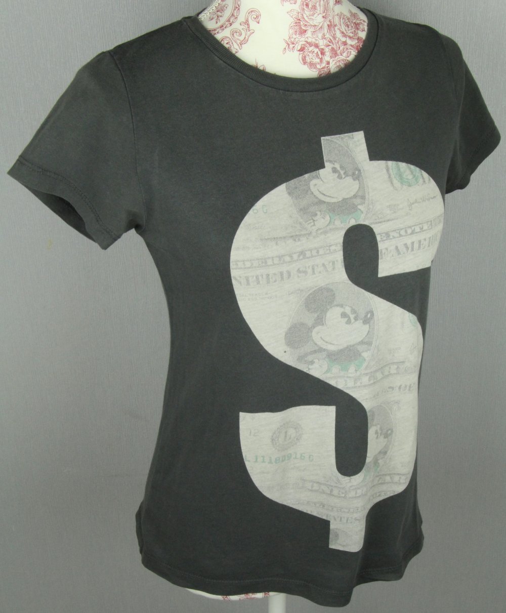 T-Shirt shirt tshirt Disney Mickey Micky Mouse Maus Dollar Zeichen Sign grau dunkelgrau