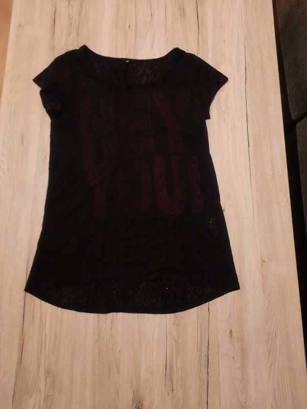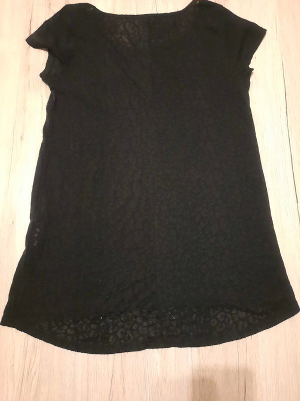T-Shirt bedruckt, hinten etwas länger geschnitten, Leomuster durchscheinend.