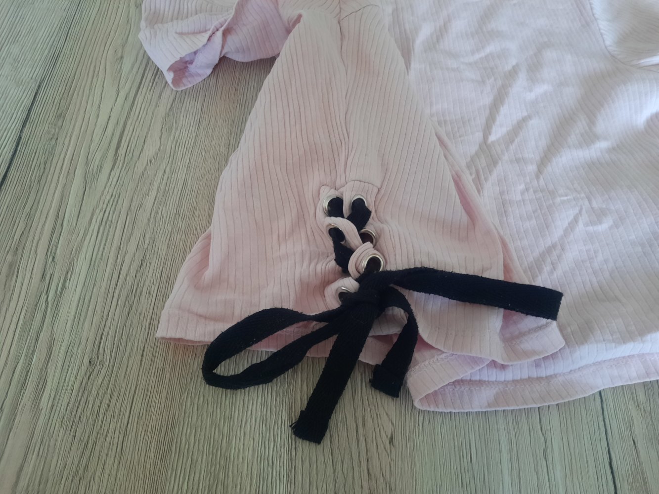 Oft getragen. Pflegehinweisschild ausgewaschen und nicht mehr lesbar, siehe Bild. Schleifenband zieht Fäden, siehe Bild.