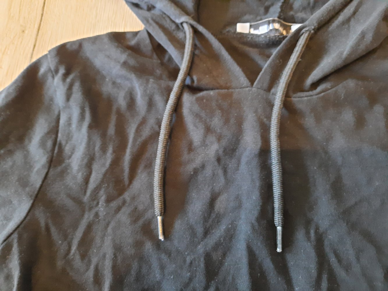 Oft getragen. Nähte an den Ärmeln lösen sich. Fäden ziehen sich am T-Shirt unten. Pilling an mehreren Stellen.
