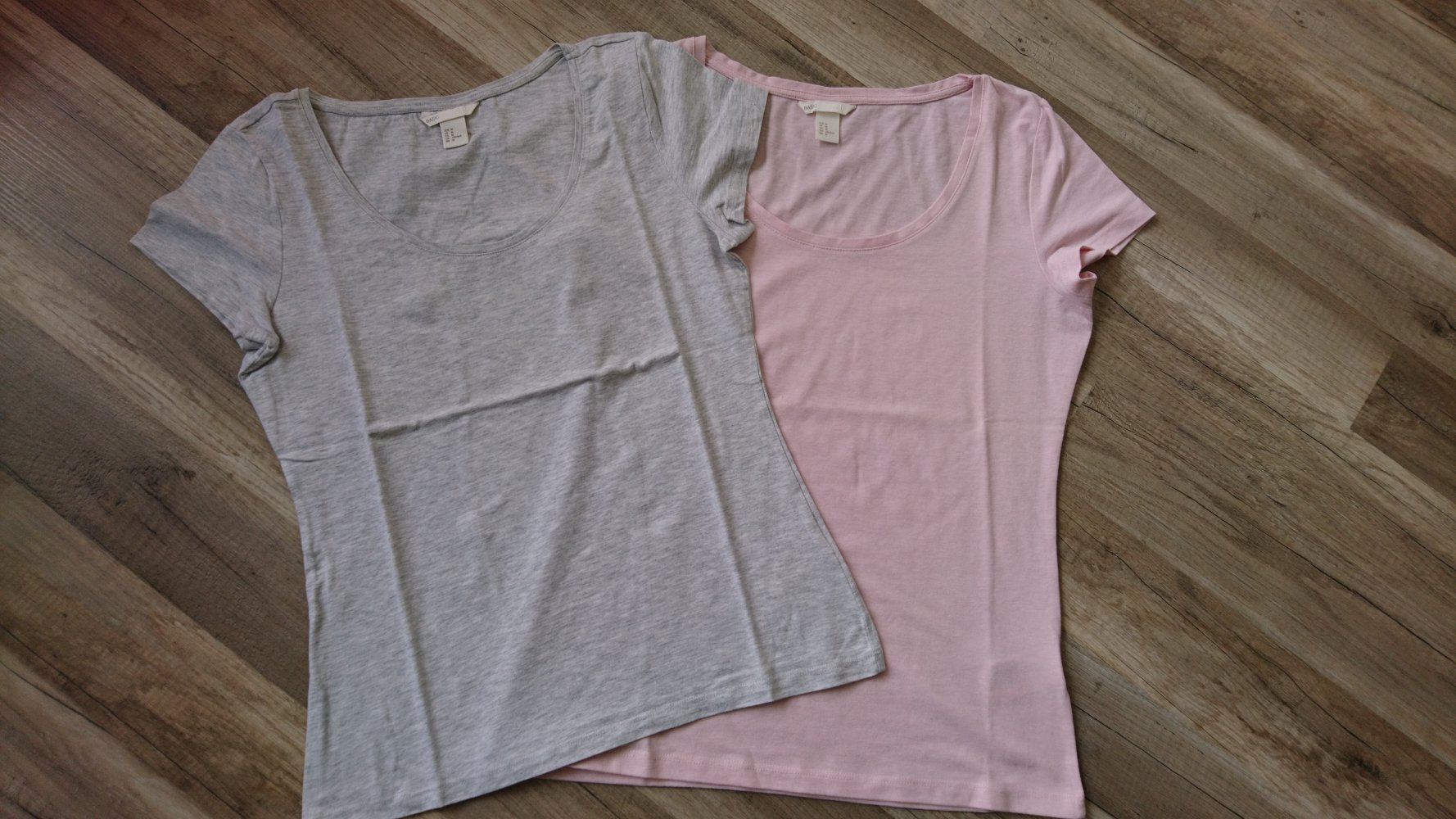 Die Shirts wurden 2-3x getragen, keine Mängel entdecken können. Leichter Stoff. Maße: rose A zu A ca. 45cm und Länge ca. 60cm / grau A zu A ca. 44cm und Länge ca. 56cm.