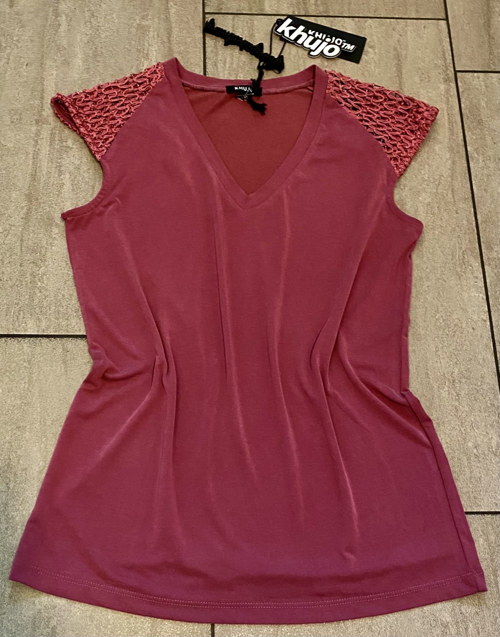 NEU Damen Shirt Sommer Stretch Bluse mit Spitze Gr.S Beerenrot Khujo „Avonmora“