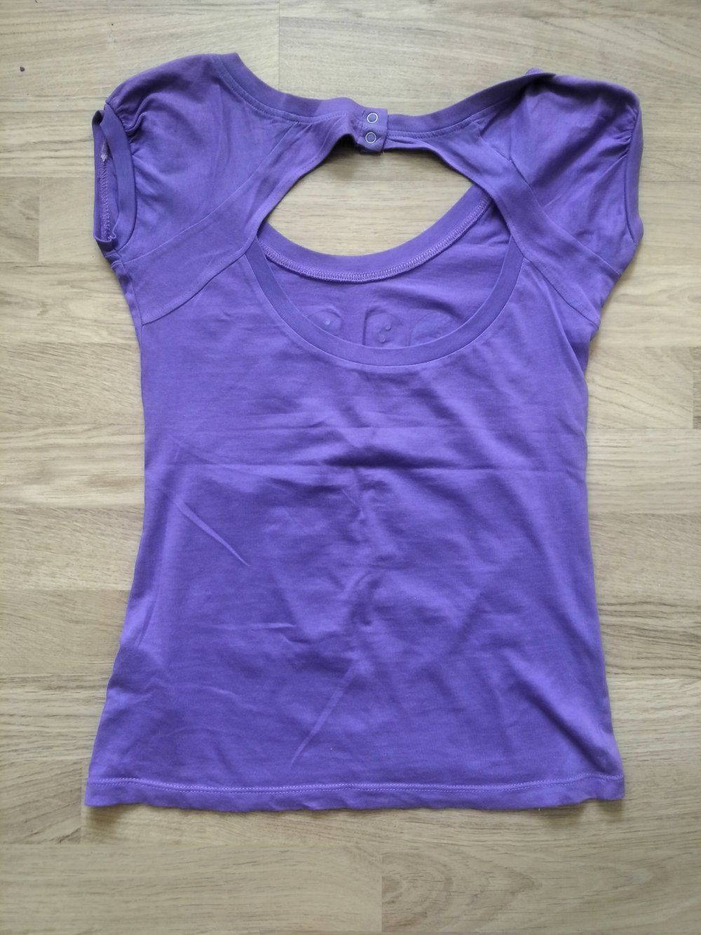 lilafarbenes T-Shirt mit Silberprint und Rückenausschnitt Gr. 36