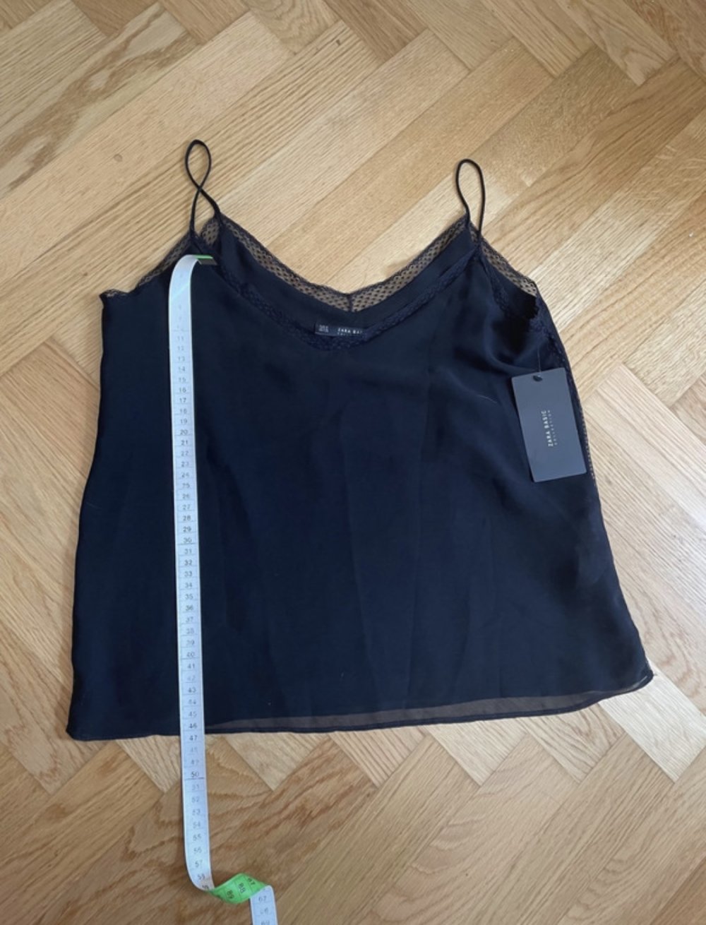 Schwarzes Top mit Spitzeneinsätzen von Zara, Gr. M, neu!