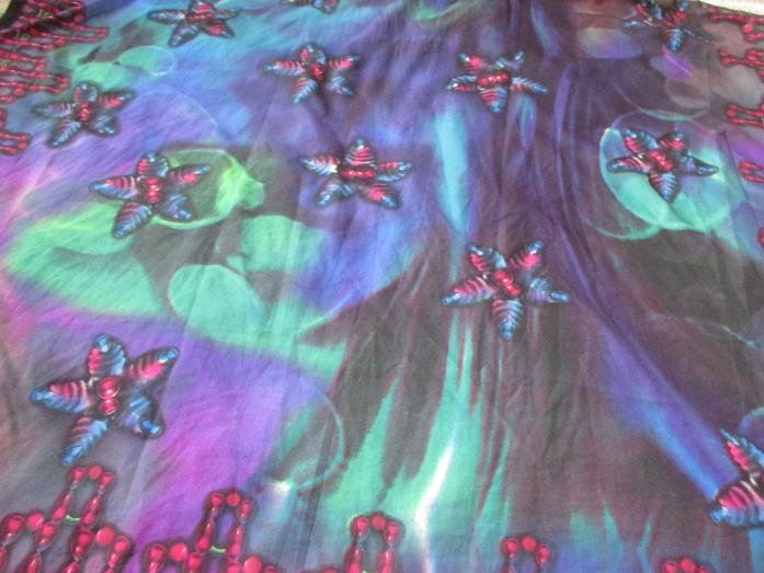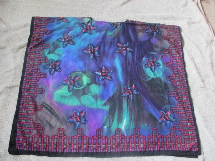 Aquarell * Blumen * Blüten * Glitzer * Strass- Kristalle * Seiden- Satin * Strand * Überwurf * Poncho * Tunika "Step In Style" Gr. 34- 46/ XS- XL * One Size * lila violett purple * pink * bunt *