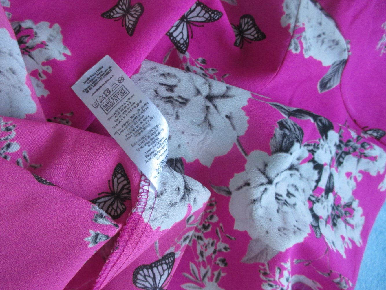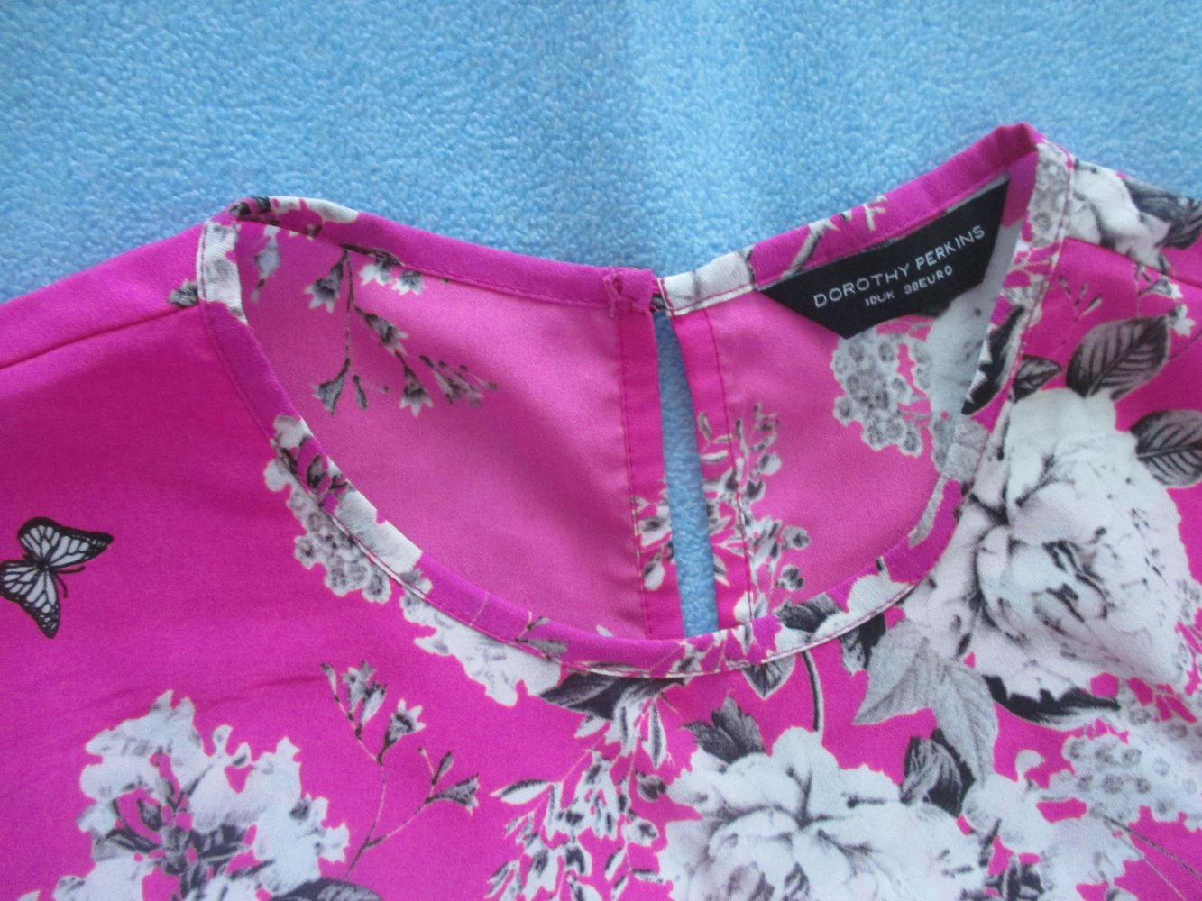 NEU * Blumen * Blüten * Romantik * Flower * Butterfly * Schmetterlinge * Seiden- Satin * Reinschlupf * Tunika * Bluse "DOROTHY PERKINS" Gr. 36- 38 S * Barbie- pink * weiß *