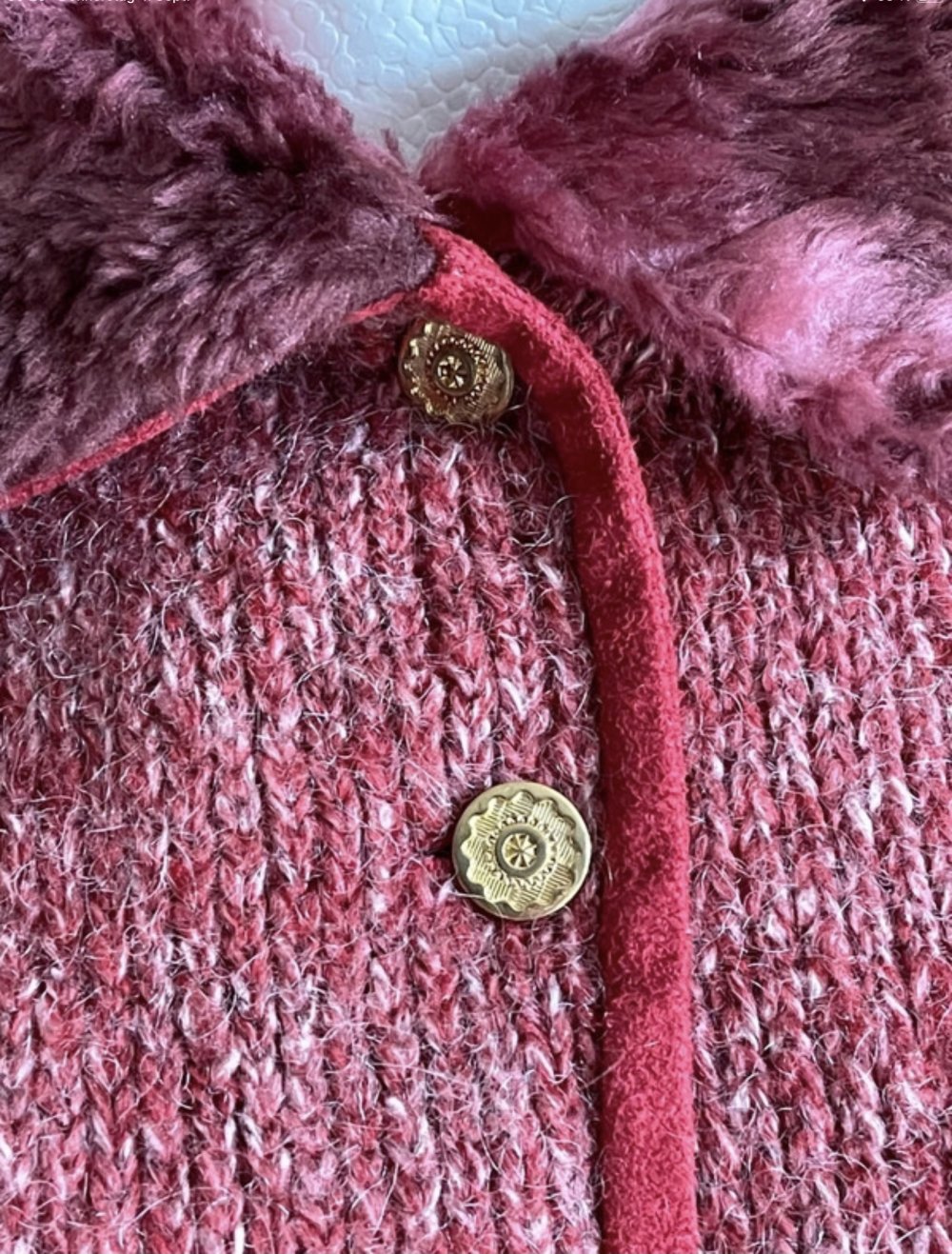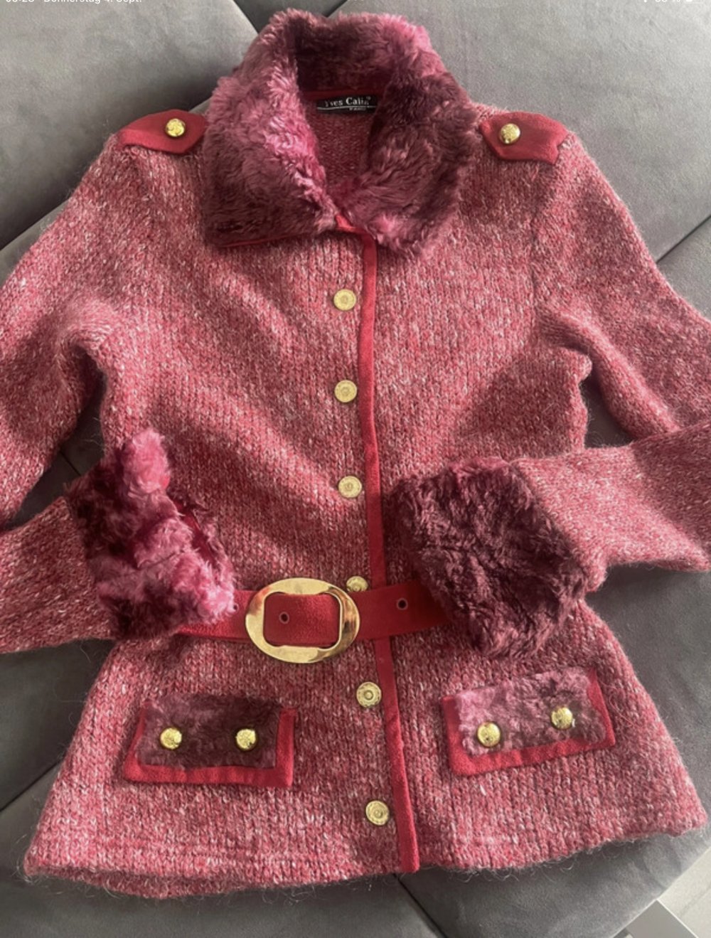 toller flauschiger Cardigan mit Pelz in Trendfarbe dunkelrot