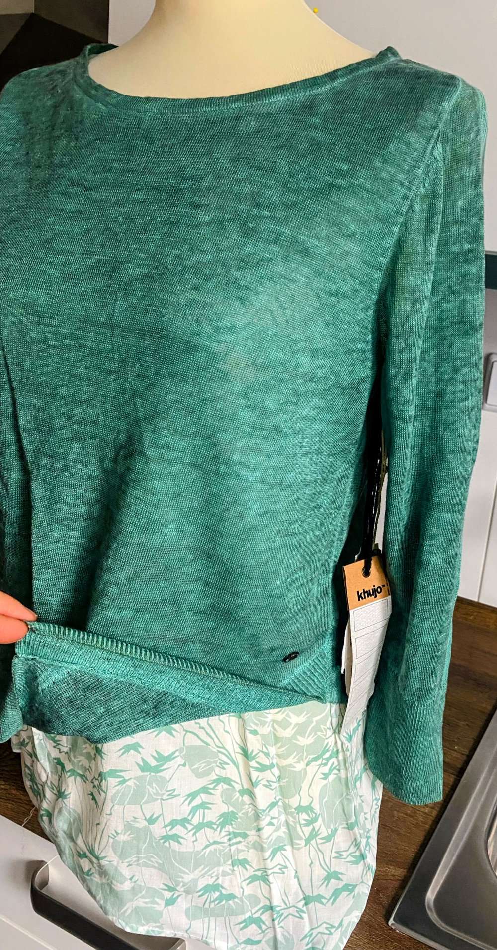 NEU Pullover Damen Leinen Lagenlook 2 in 1 Gr.S in Grün/Creme von Khujo