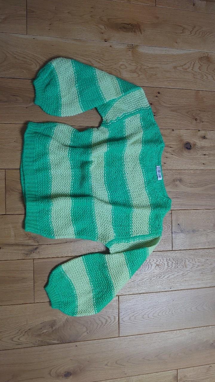 Handarbeit Pulli Baumwollpulli Strickpullover Pullover handgestrickt Gr.38/40 grau/grün