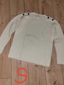 weiß grau gestreifter strickpulli von zara mit dreiviertel ärmeln und leichtem v-ausschnitt. ungetragen und deshalb neuwertiger zustand. figurumschmeichelnd. größe 38 bzw M