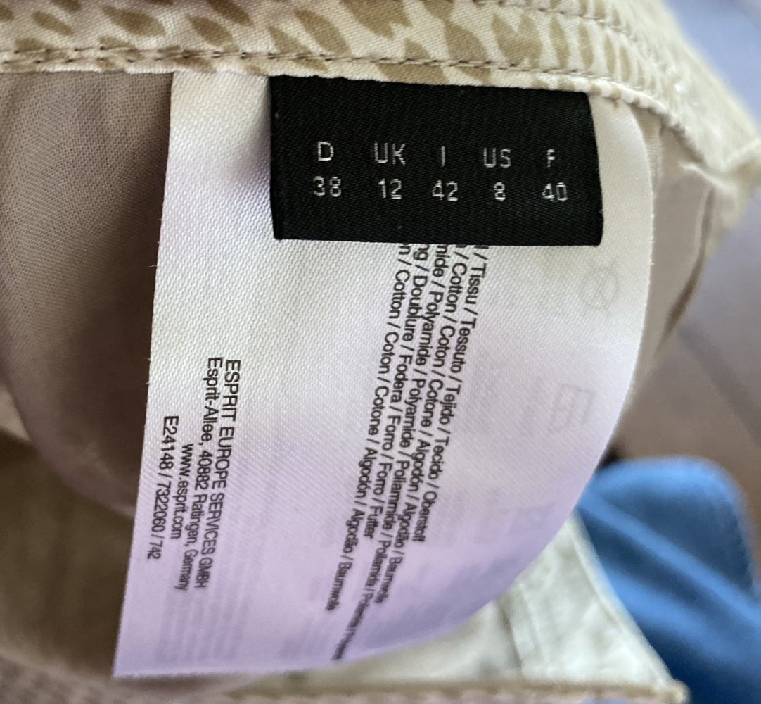Esprit, Rock, gemustert, Falten, weiß/ natur Töne, Gr. 38