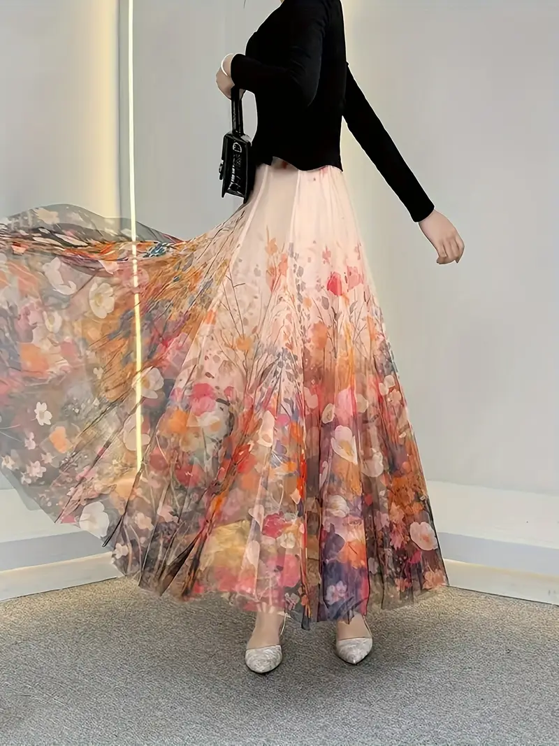 Rock 90 cm NEU Tüllrock Sommerrock XXL 46 48 50 52 54 apricot bunt Abendrock Maxirock