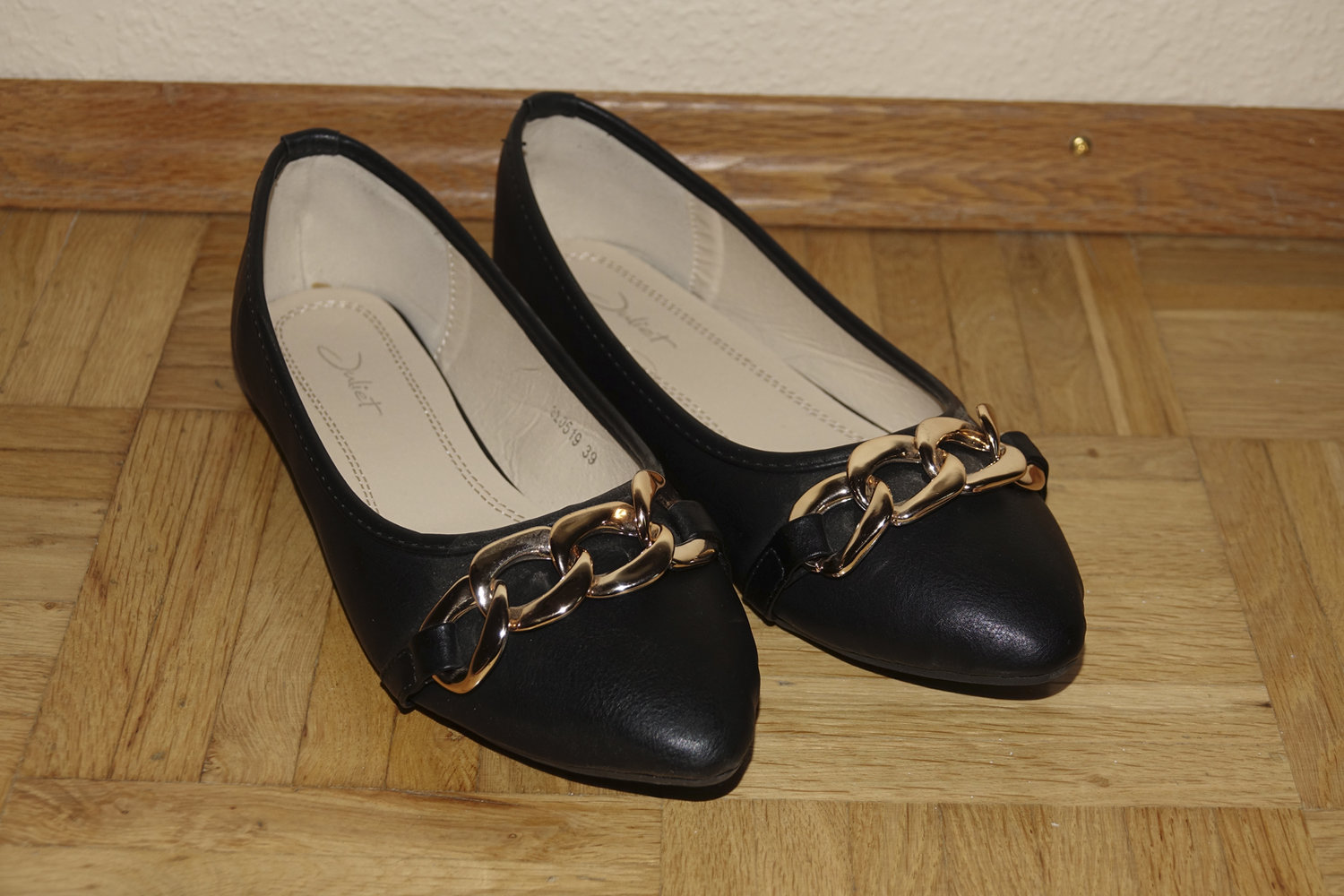 Ich biete hier wunderschöne schwarze Ballerinas mit toller goldener Schnalle zum Kauf an, habe sie nur 1x kurz getragen und leider passen sie mir nicht.