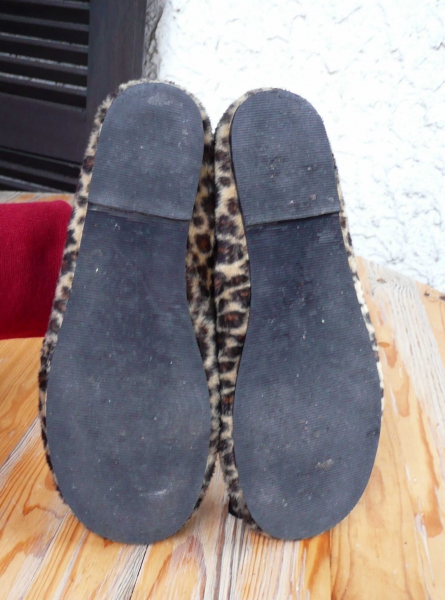 Das Obermaterial der Schuhe ist aus kuscheligem Plüsch gearbeitet.