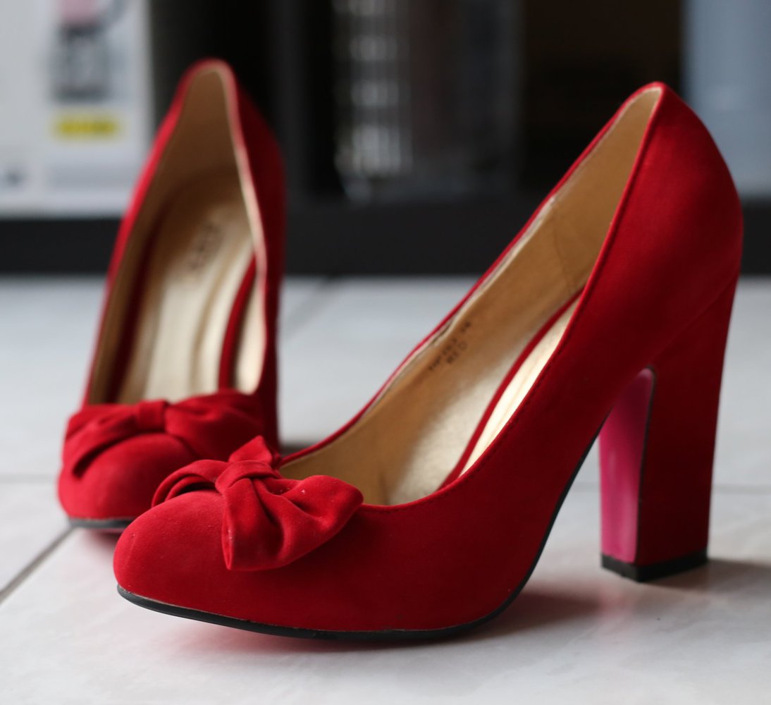 Diese tollen roten Pumps mit Schleife hatte ich nie an. Es sind auch Ersatz-Absätze dabei.