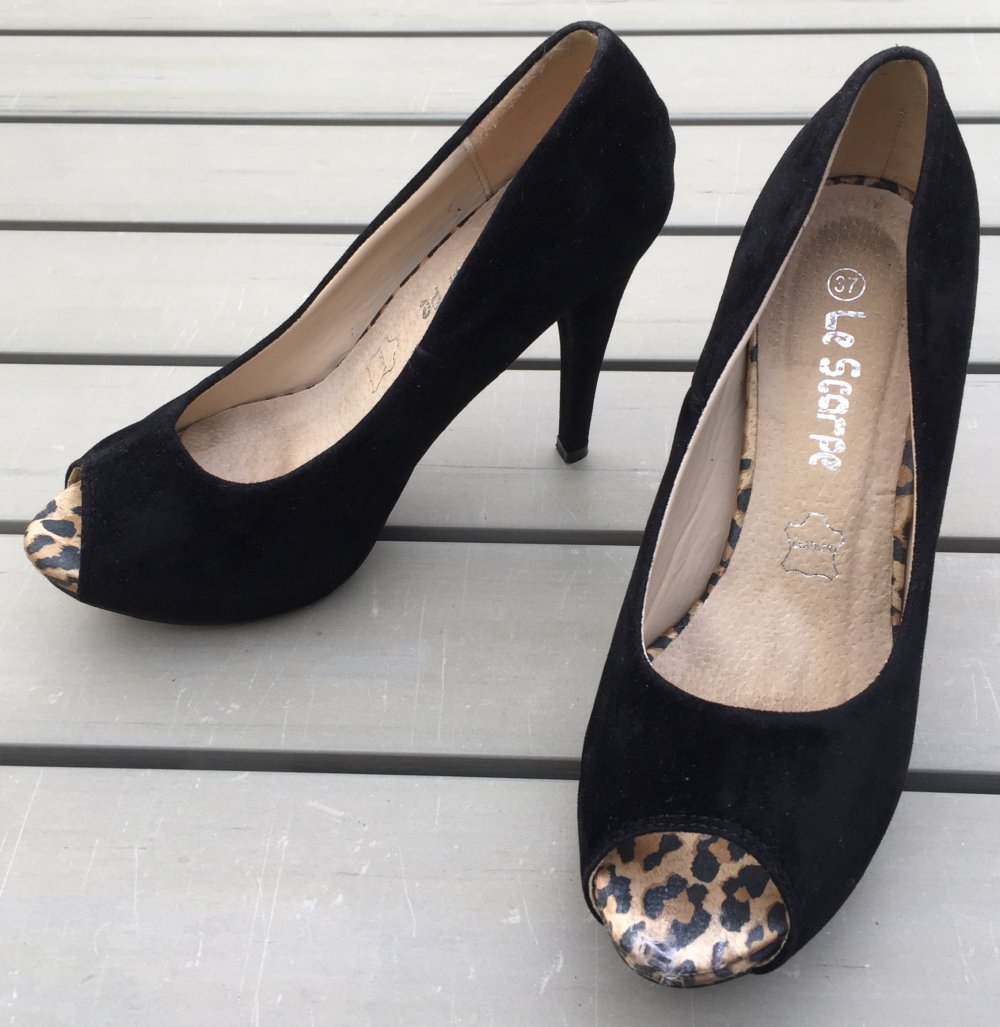 Süße Peeptoes mit Leo-Futter an der Spitze und verstecktem Plateau von ca. 2cm.