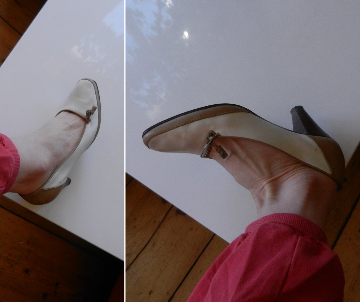 Leder Pumps 39 Toddel Quaste beige weiß Vintage BERLIN
