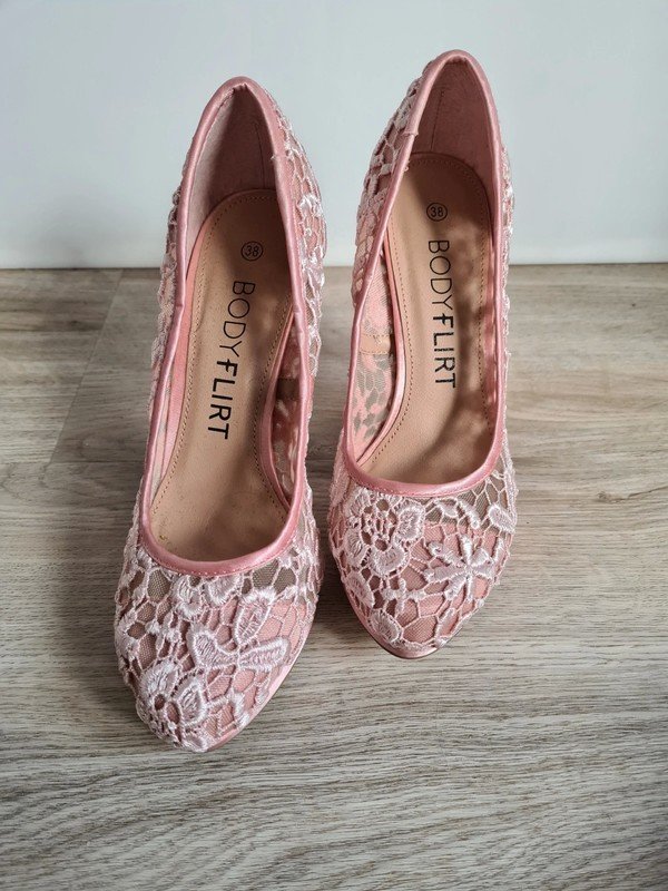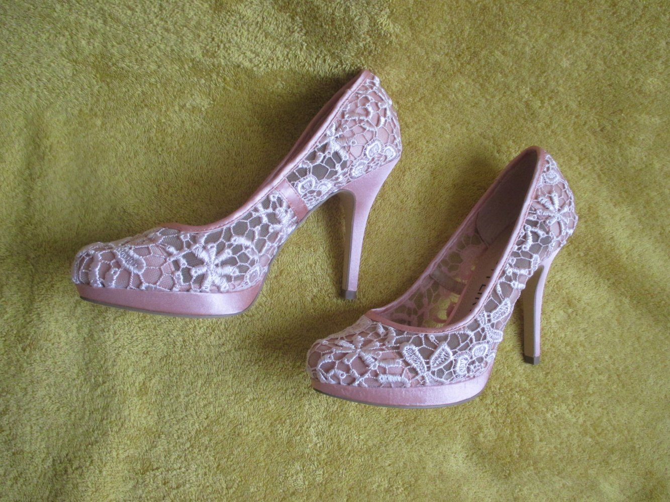 NEU und ungetragen * Blumen * Blüten * Flower * Lace- Spitze * High- Heels * Plateau * Pumps * Schuhe "BODYFLIRT" Gr. 37- 38/ 5 * rosè * rosequarz *