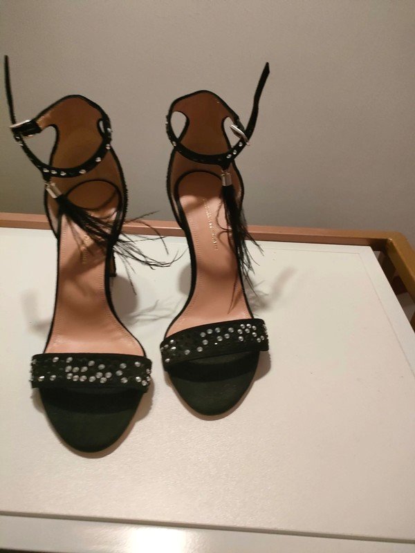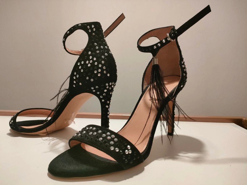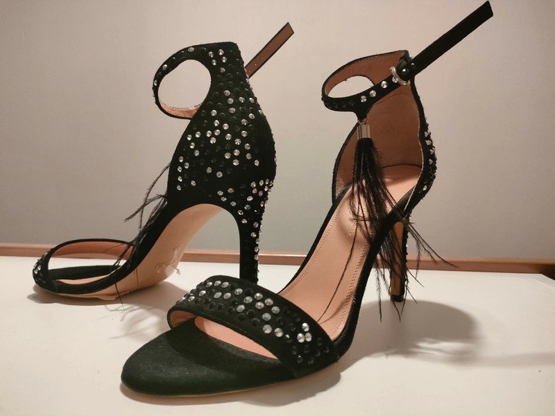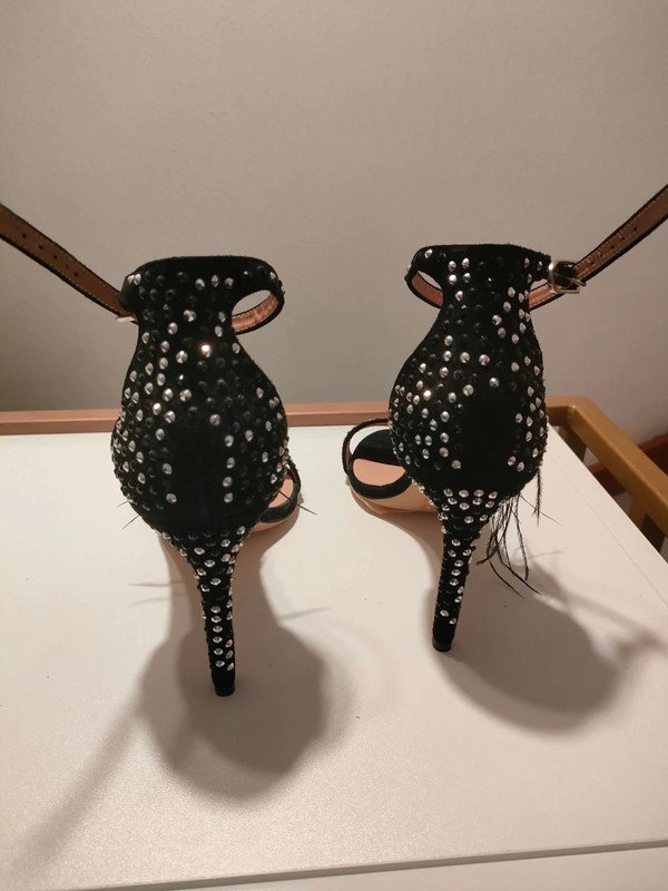 NEU mit Etikett * Glitzer * Swarovski * Strass * Kristalle * Steine * High Heels * Stilettos * Fessel * Riemchen * Sandaletten * Sandalen * Schuhe "Guido Maria Kretschmer" Gr. 39/ 6 * schwarz * black *