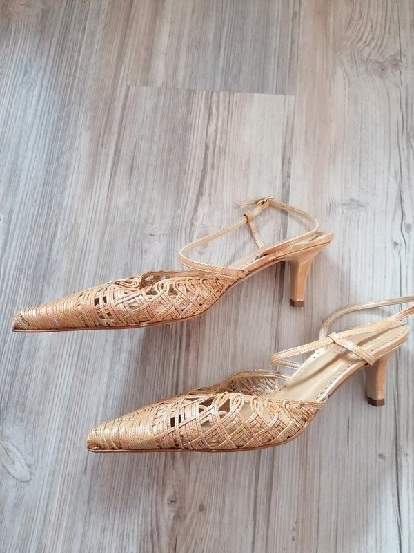 NEU im Karton * Flecht * Häckel- Optik * Echt Leder * High Heels * Slingbacks * Sling- Pumps * Schuhe "LODI" Made in Spain * Gr. 38/ 5 * gold * kupfer *
