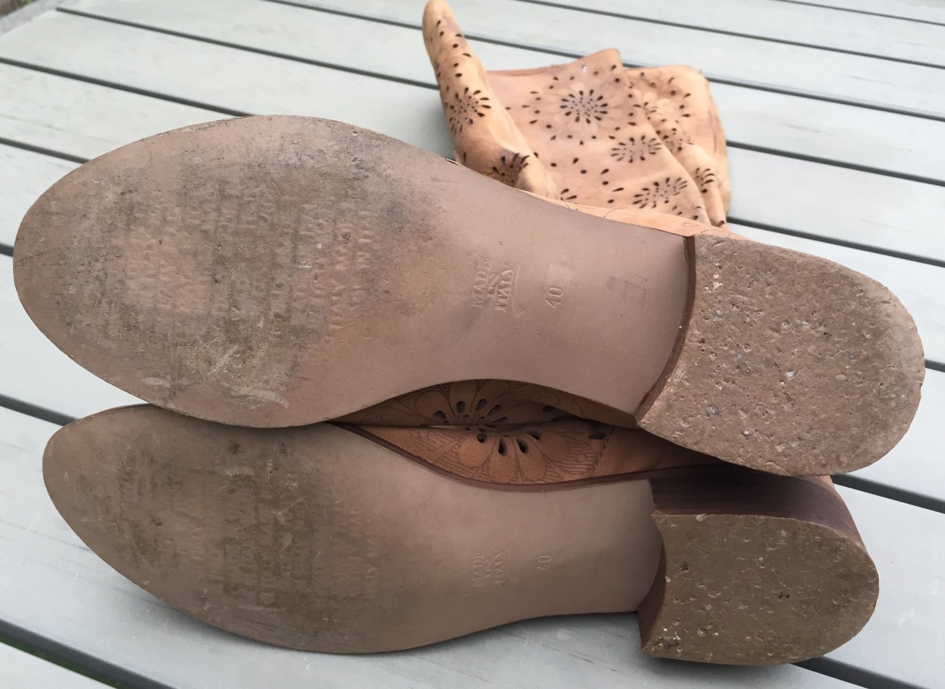 SOMMERSTIEFEL Slouch LEDER natur BLUMEN Cut Outs Gr. 40
