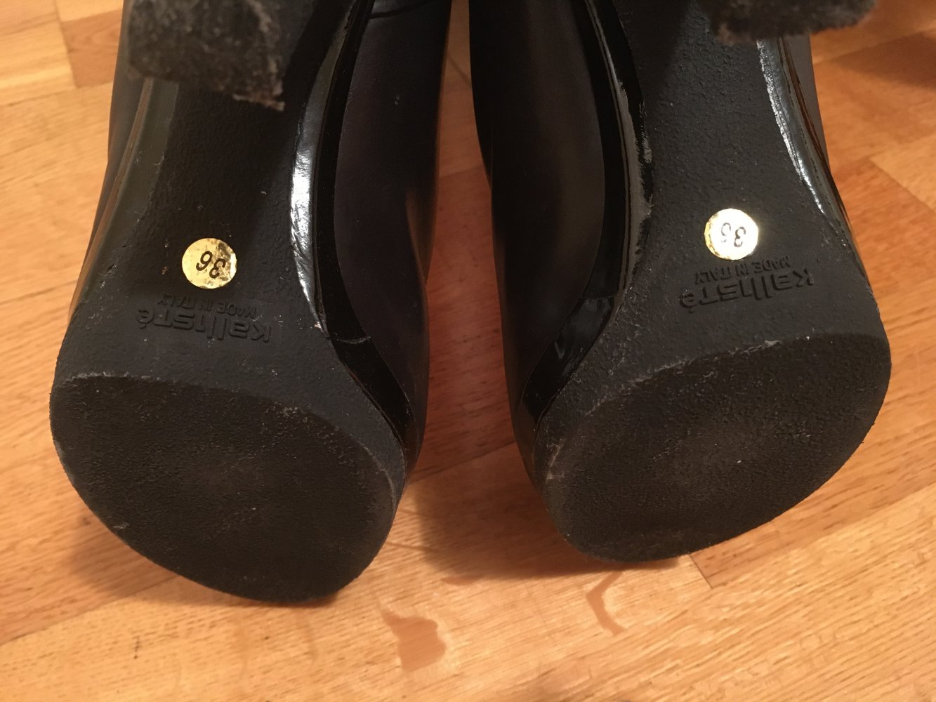 Italienische Designer Stiefel von Kalliste in schwarz aus Glattleder, gekauft in der Schuhboutique Milliways in Hamburg Eppendorf, Neupreis lag bei knapp 350 €.