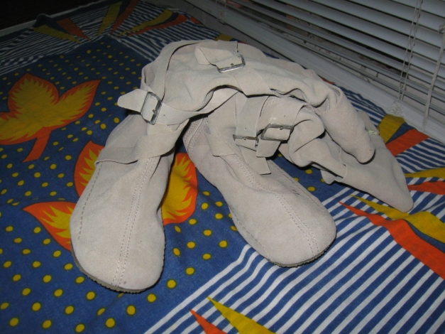 Diese tollen Stiefel besitzen an der Seite,jeweils einen Reißverschluß,sie sind super bequem und sind mit Riemchen verziert.Der genaue Farbton ist ein Hellbeige.