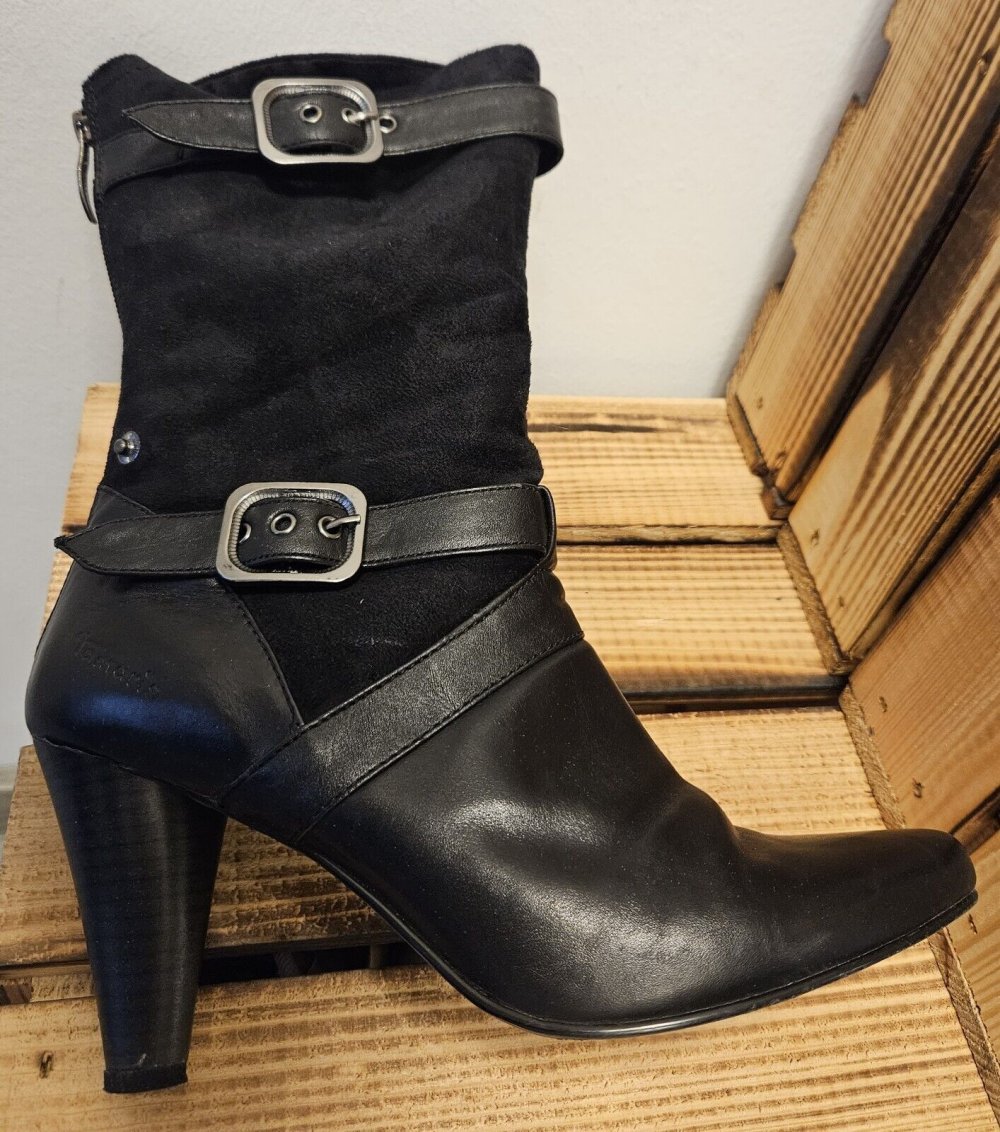 Trendy Damen Stiefelette (Tamaris) Gr. 39 black Absatzhöhe 28 mit Fellbesatz