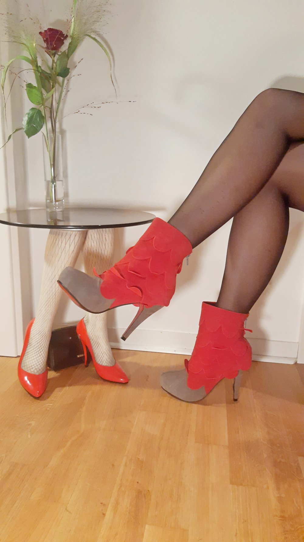 rote Stiefeletten Plateau Wildleder Metallabsatz Stiletto Leder 40