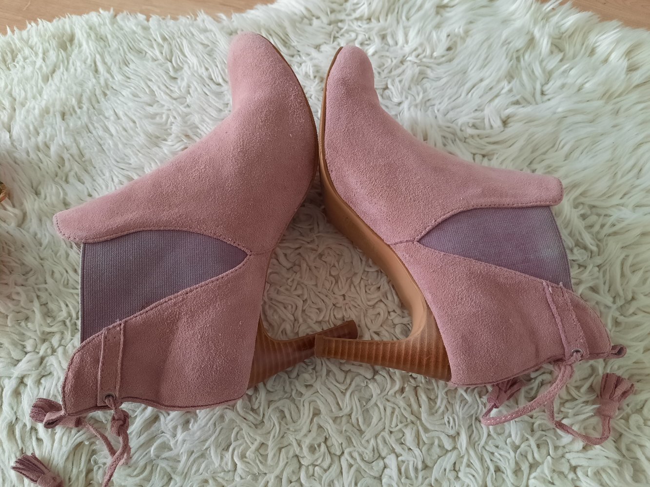 Biete diese modischen von mir nur 2x getragenen Stiefeletten aus Leder in der Farbe rosé an. Der Schaft ist aus weichem Wildleder und hat durch die Seitengummis sowohl einen lässigen als auch eleganten Look.
