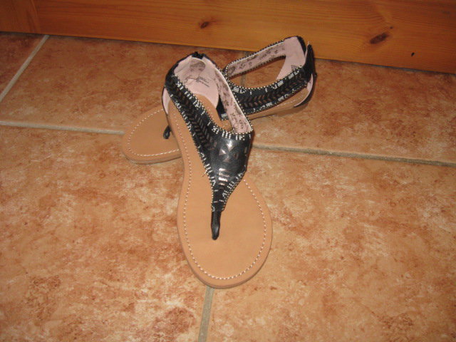 Biete fast neue Zehentreter, sie wurden nur kurz anprobiert. Ich muss mich einfach trennen, habe einfach zu viele Schuhe. Keine Größenangabe vorhanden. Die Gesamtsohlenaußenlänge beträgt ca. 27cm = Gr. 39/40.
