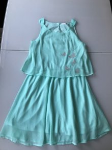 Mädchen Kleid Kleidchen Grün Schmetterlingen Glitzer Glanz Effekt Besondere Anlässe Unterrock, Marke: Here+There C&A, Gr. 158, NEU mit Etikett