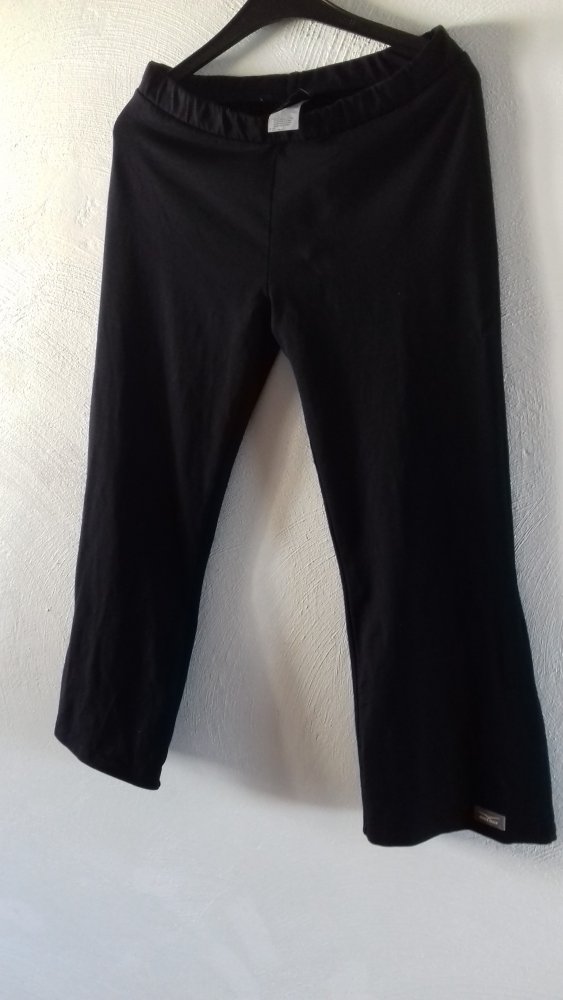 Ausgefallene Fitnesshose 3/4 Länge. Sporttight in Capri-Länge. Gr. M. mit Flügelbeinende. Tragbar ab Gr. 36 bis ca. Gr. 40. Gummibund oben, im Ruhezustand 34 cm breit. Dehnbar bis etwa 42 cm. Gesamtlänge 70 cm. Innenbeinlänge etwa 55 cm. Unten Seitenschlitze. Eine Schlaglegging. Hab die Flügel-Enden mit ein paar Nadelstichen fixiert. Lässt sich leicht wieder Auftrennen. Gepflegter Tragezustand.