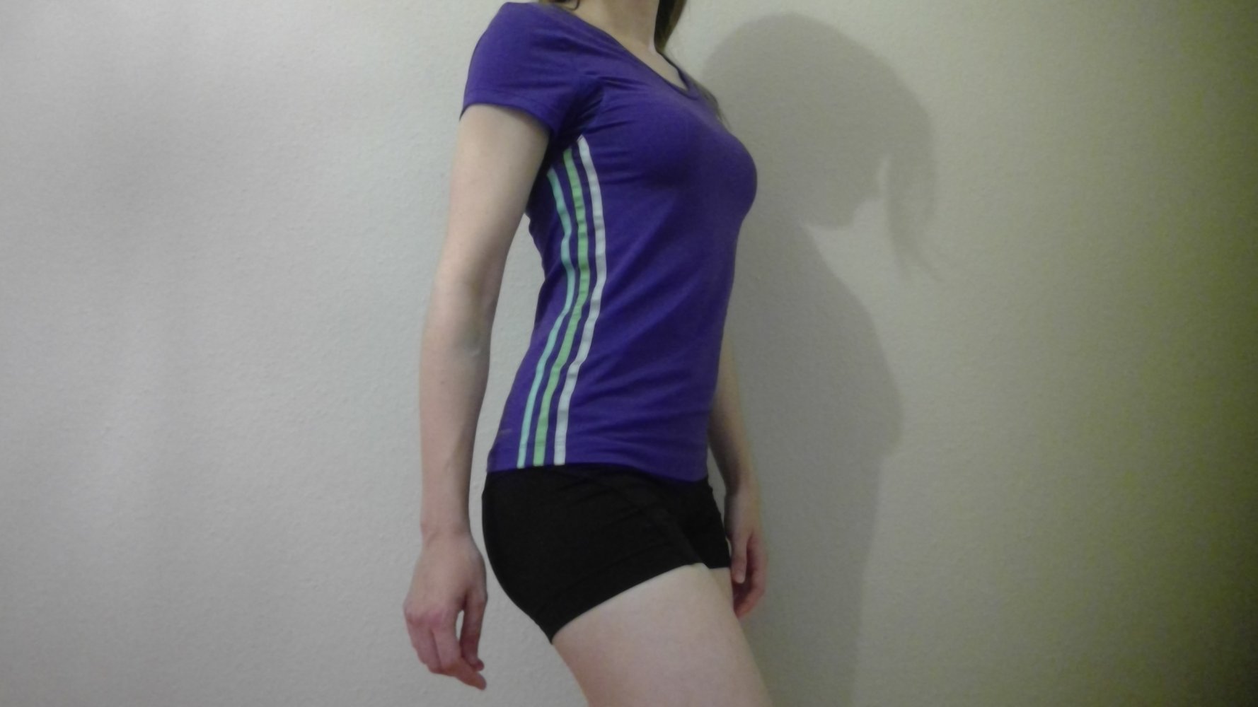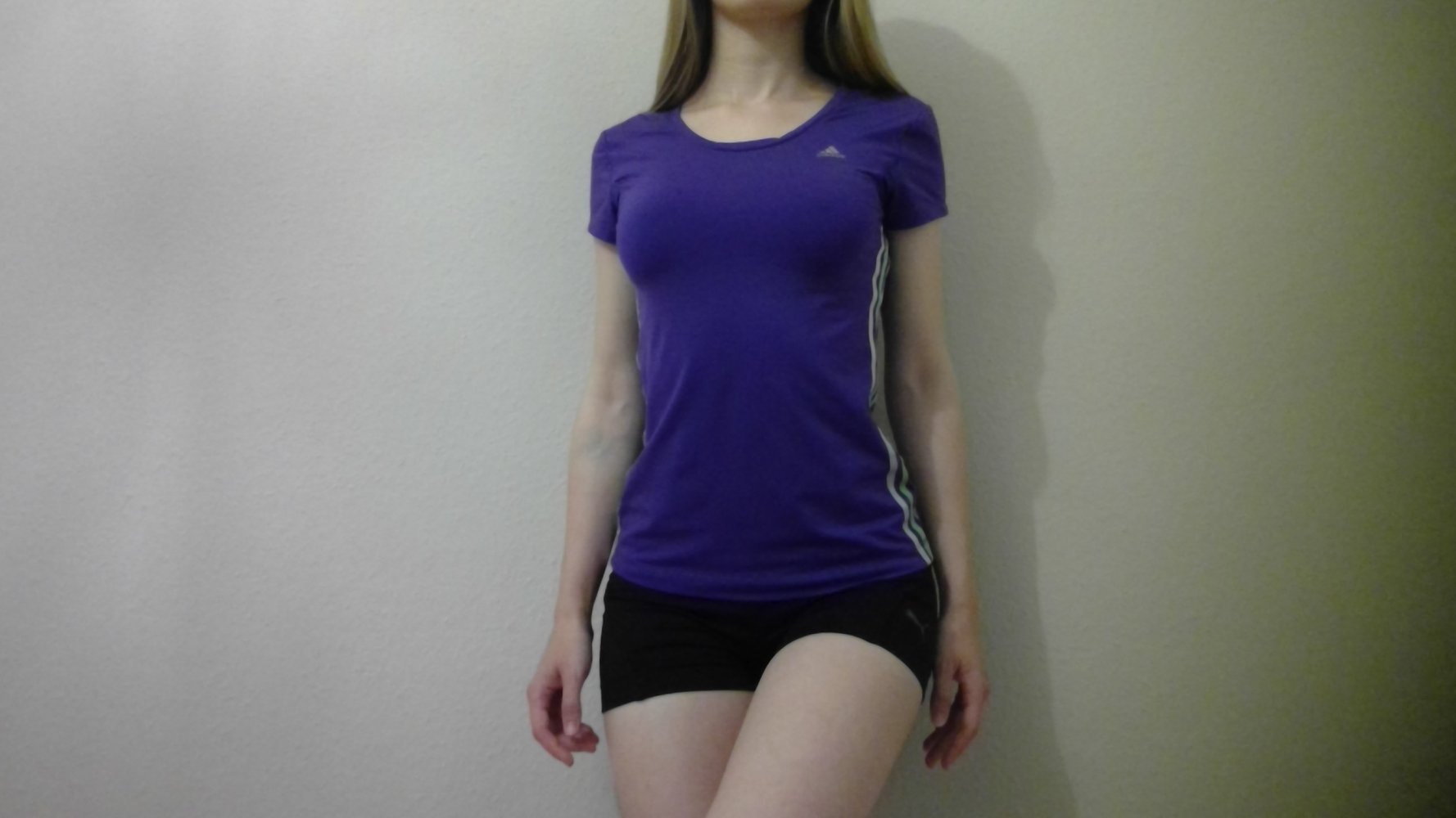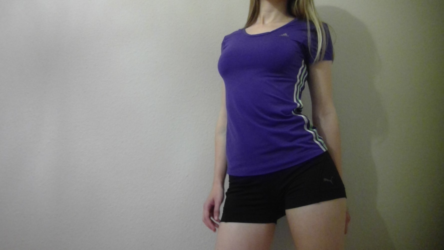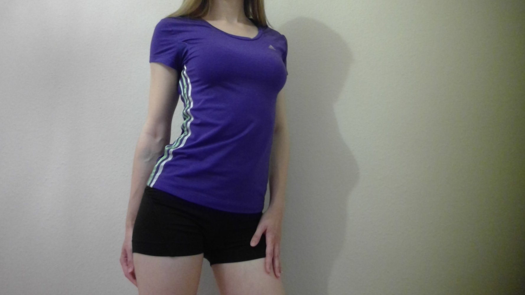 Sportshirt von Adidas in lila, mit Streifen an der Seite.