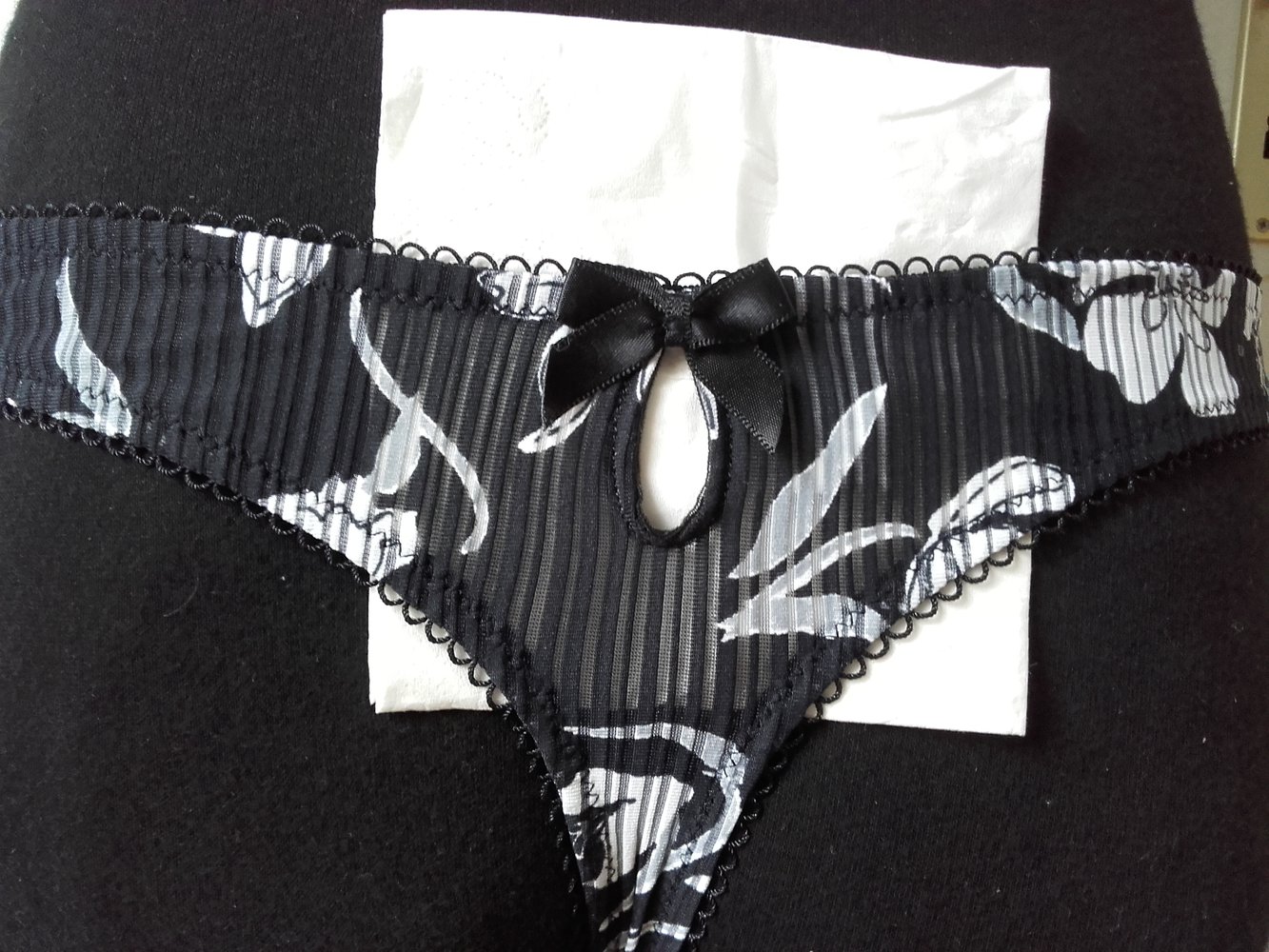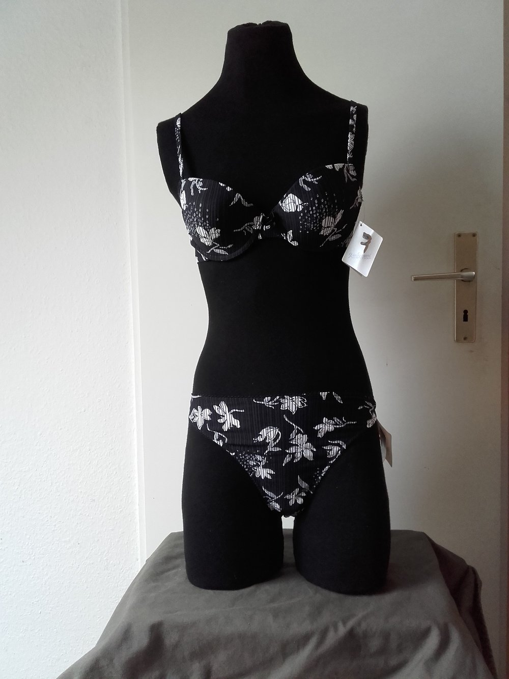 Amboretti, schwarz weiß, stellenweise durchsichtiig, Tanga 38BH 75B
