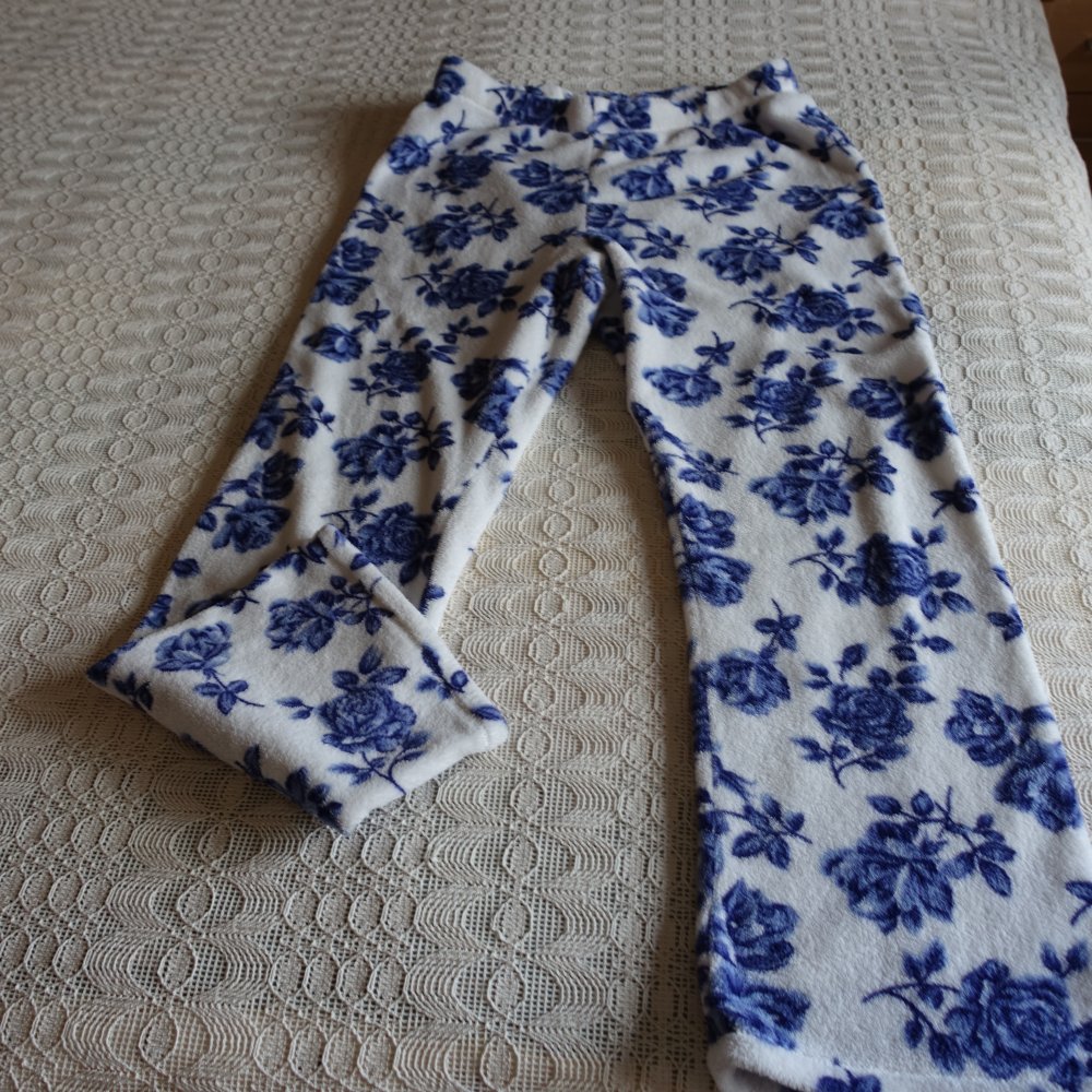 kuschelig warmer Jogginganzug bzw. Schlafanzug, Pyjama, Oberteil + Hose Gr. L bzw. Gr. 42/44, 100 % Polyester beide Teile, Fleece, grau/blau + weiß/blau,