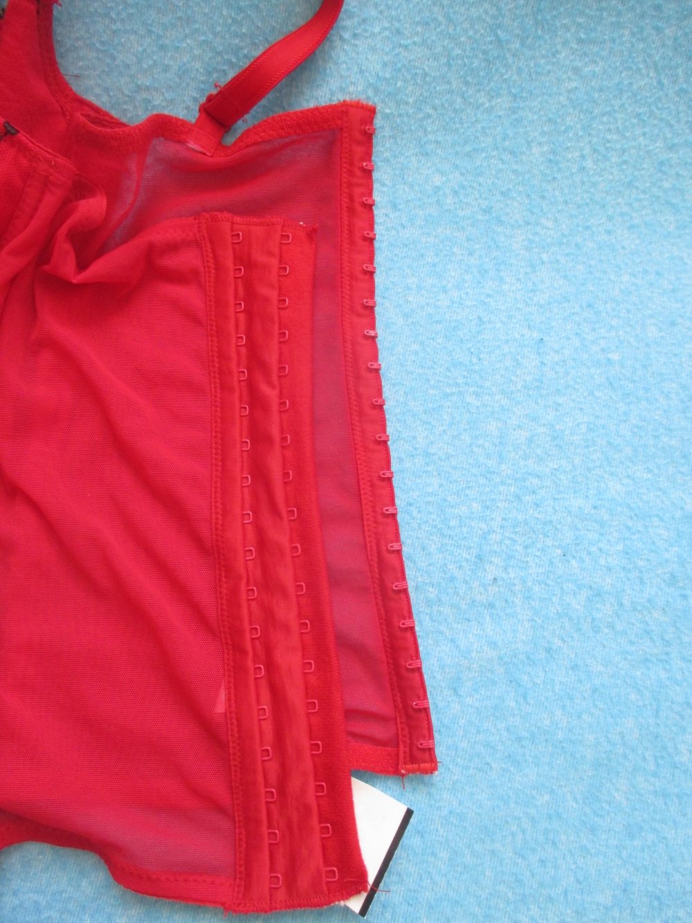 Mit eine doppelten, mit unzähligen, Häckchen-Verhluss, hinten.