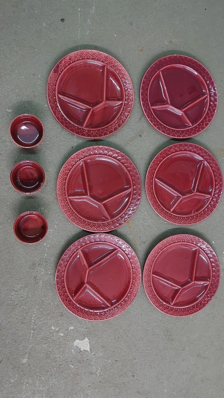 6 Fondue Teller und 3 kleine Tonschüsseln