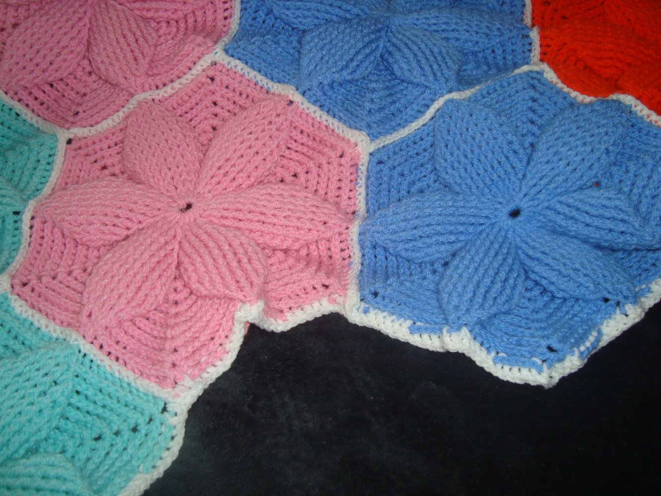 Häkeldecke im 3 D Blütenmuster