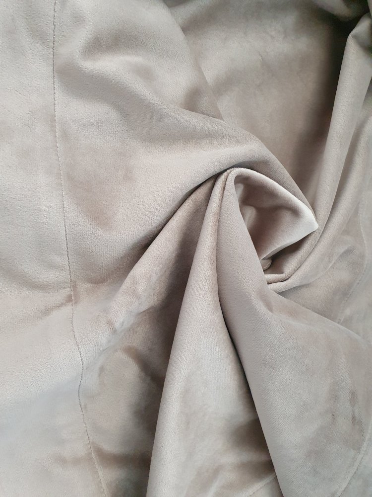 Beige/ hellbraune schimmernde Farbe, schwarzer Stoff auf der Rückseite